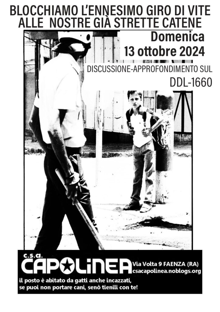 BLOCCHIAMO L’ENNESIMO GIRO DI VITE ALLE NOSTRE GIÀ STRETTE CATENE!!! DISCUSSIONE-APPROFONDIMENTO SUL DDL-1660