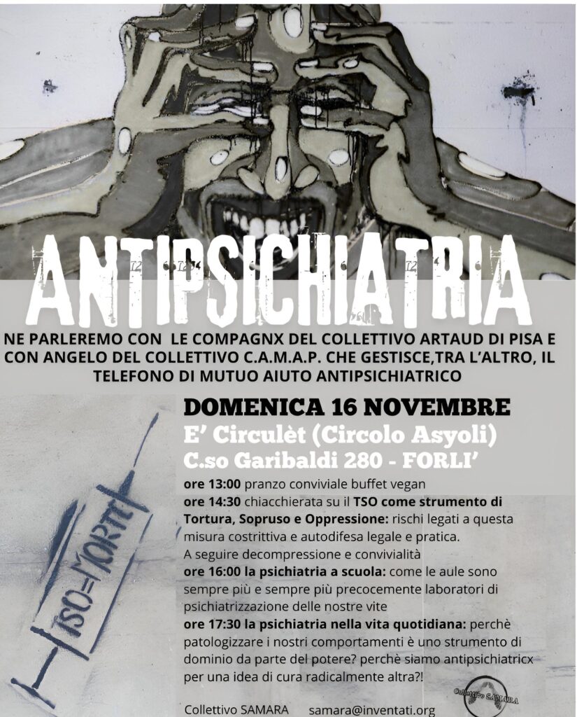 ne parleremo con le/i compagnə del Collettivo Artaud di Pisa e con Angelo del Collettivo CAMAP che gestisce tra l’altro il telefono di mutuo aiuto antipsichiatrico.