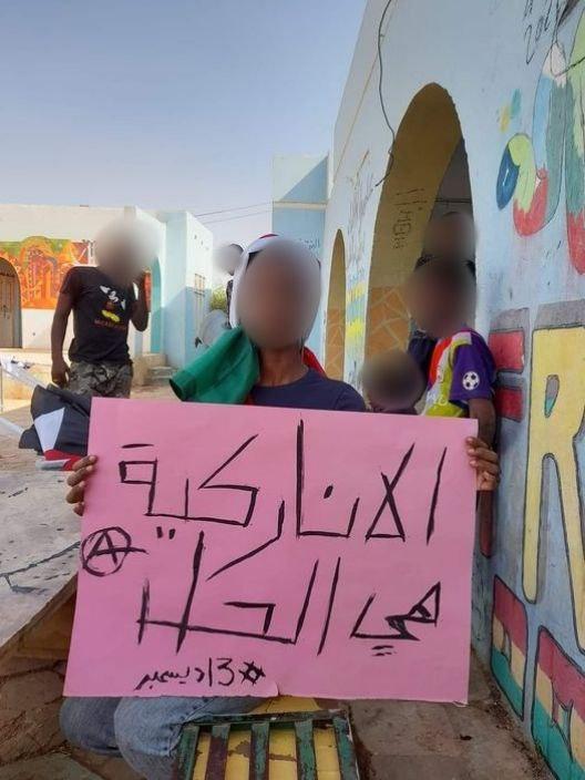Abbiamo creduto nell’Anarchia in un paese dove l’autorità è onnipresente, e abbiamo combattuto per difenderci, difendere i nostri ideali e preservare la nostra unità. Oggi, abbiamo bisogno di voi: tendeteci la mano e sosteneteci affinchè possiamo resistere alle autorità e ai Janjawid.