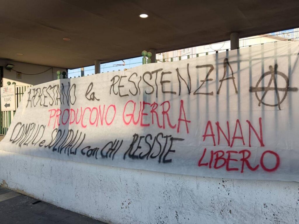 Oggi 19 dicembre, mentre si svolgeva all’Aquila l’ultima udienza del processo che vede Anan, Ali e Mansour accusati di terrorismo internazionale, è stata ritardata l’apertura dello stabilimento della Leonardo Spa di Fusaro (Napoli), nell’orario di ingresso ai lavoratori dalla presenza di un gruppo di compagnx che si è ritrovato davanti ai cancelli. Nonostante il numero contenuto di partecipanti, i cancelli sono rimasti chiusi ai lavoratori per la durata del breve presidio. Da lì è partito un corteo spontaneo che ha rallentato il traffico fino alla cumana di Fusaro, per ribadire che la guerra comincia da qui, dalle fabbriche di armi e dalla repressione di chi resiste.