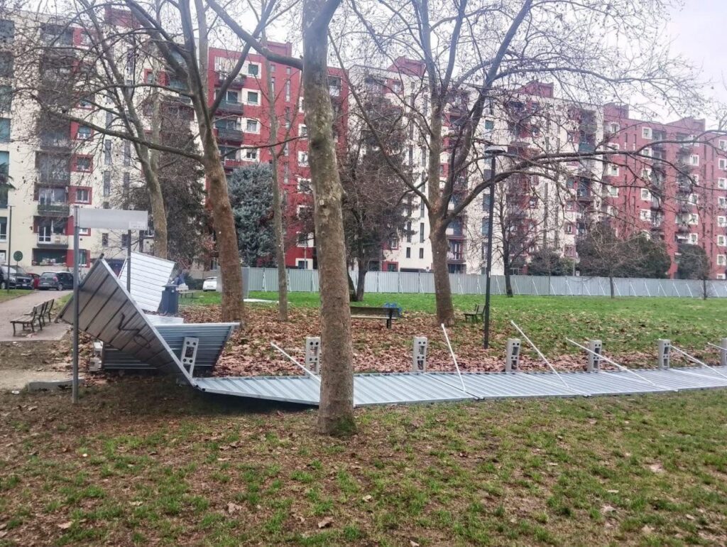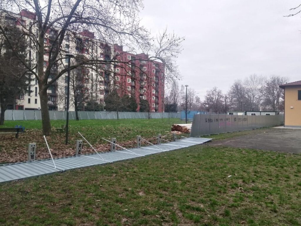 Alcune persone stanno cercando di impedire agli operai di rimettere le transenne