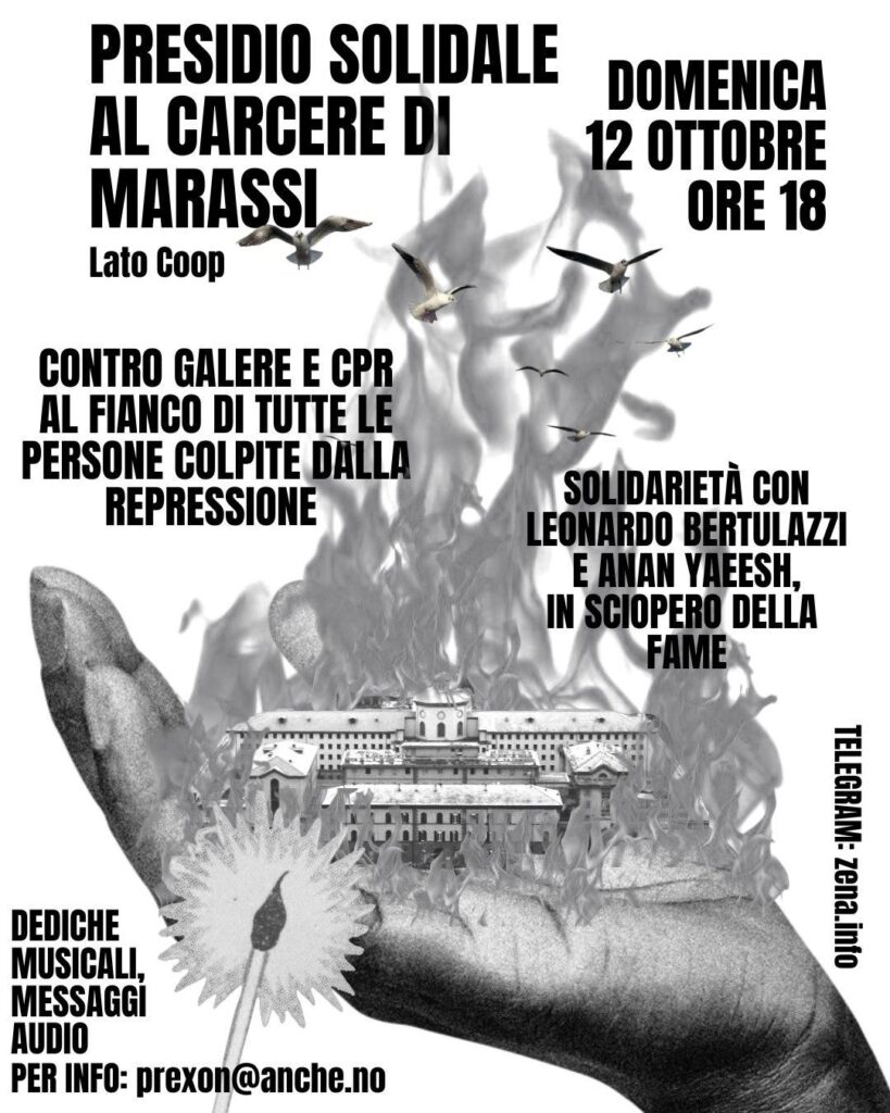 Per il compagno anarchico Alfredo, ancora rinchiuso al 41bis di Bancali (Sassari), da tempo la corrispondenza è ormai totalmente bloccata, cosí come l’accesso alla biblioteca e ai pochi libri e CD giá autorizzati. La posta, anche senza passare dalla censura, sparisce nel nulla.